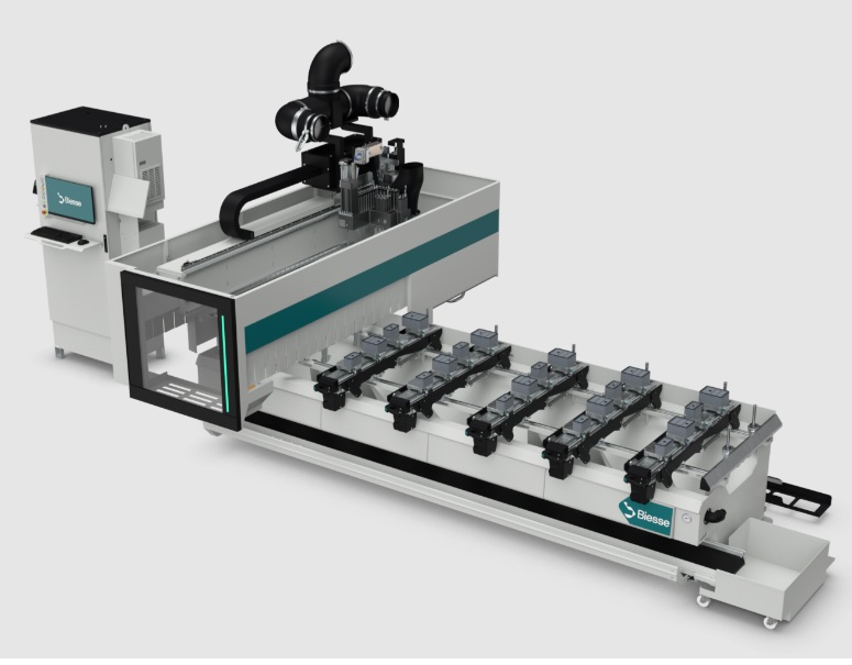 Easy e compact machining center for furniture and solid wood applications. The cantilever solution allows the loading of large panels.